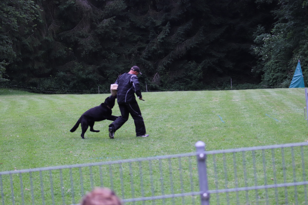 Der Schutzdienst ist oft eine spannende Sache. Schutzdiensthelfer Mark Grabe bewältigte seine Aufgabe wie immer für alle Hunde perfekt und alle haben bestanden.